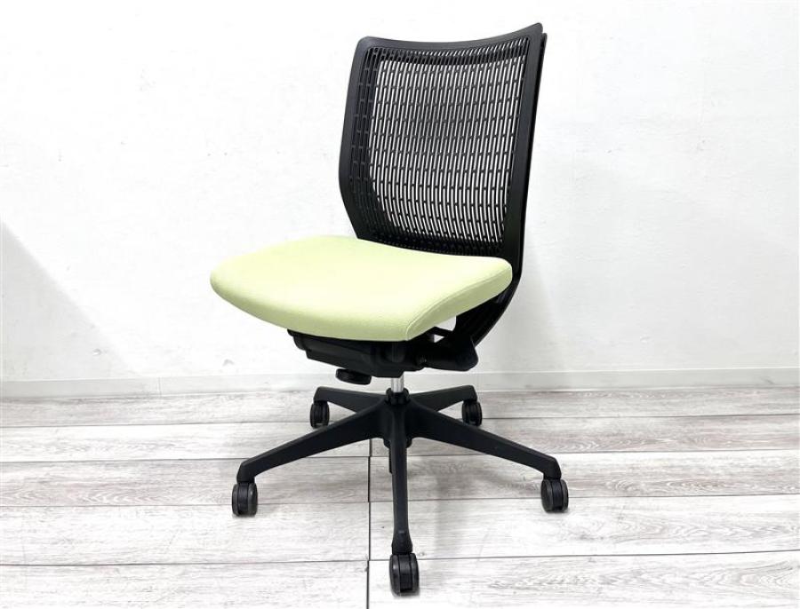 【在庫入替セール品【定価6万円】【快適さにリピーター続出!人間工学に基づいた快適な座り心地!】■オカムラ(okamura) ヴィスコンテ(Visconte) プレーンタイプ 肘無ローバック 背面メッシュ ■背面:ブラック/座面:ピスタチオグリーン