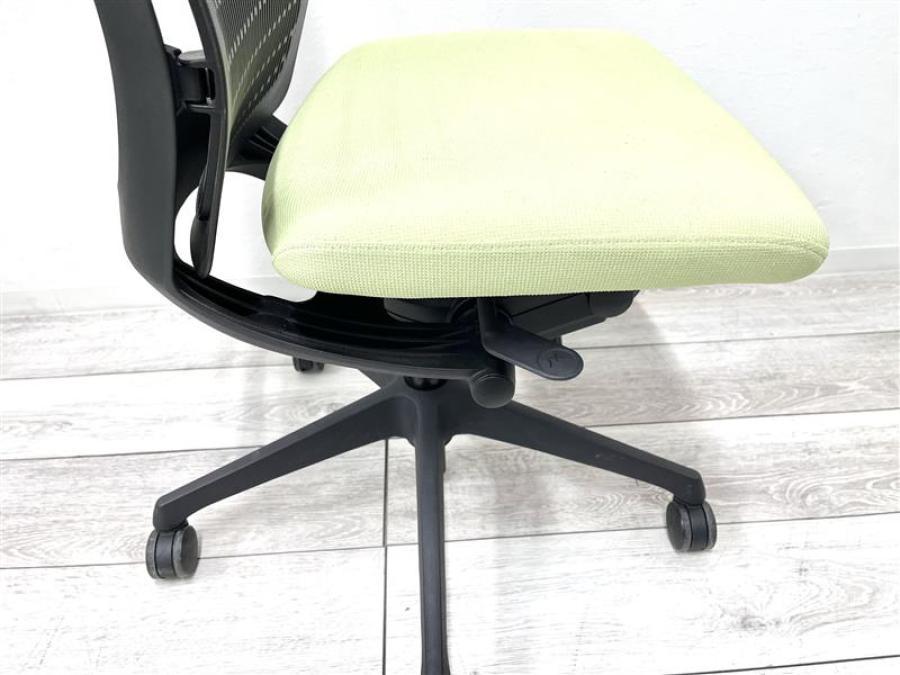 【在庫入替セール品【定価6万円】【快適さにリピーター続出!人間工学に基づいた快適な座り心地!】■オカムラ(okamura) ヴィスコンテ(Visconte) プレーンタイプ 肘無ローバック 背面メッシュ ■背面:ブラック/座面:ピスタチオグリーンサーキュラーバリューCO2削減量の算出について