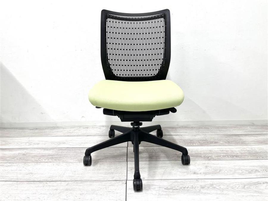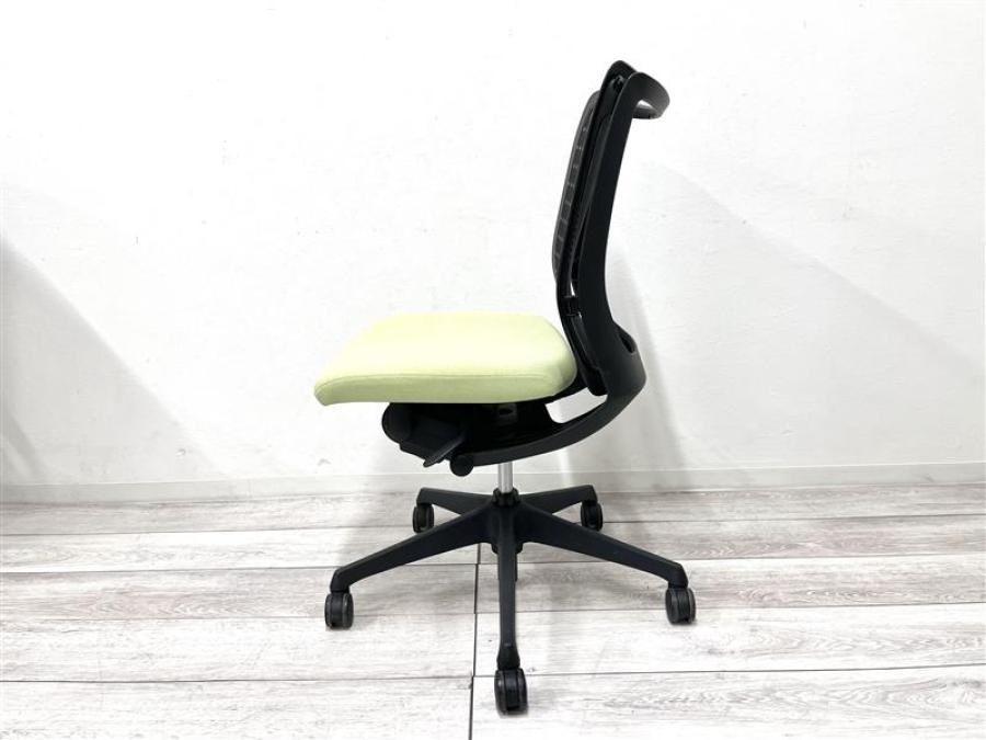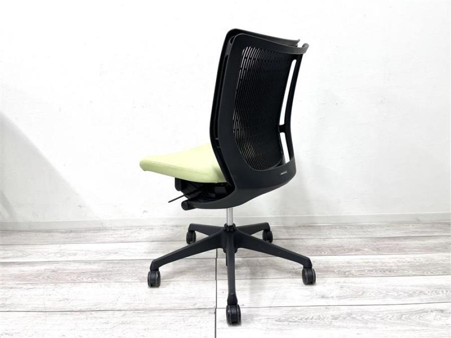 【在庫入替セール品【定価6万円】【快適さにリピーター続出!人間工学に基づいた快適な座り心地!】■オカムラ(okamura) ヴィスコンテ(Visconte) プレーンタイプ 肘無ローバック 背面メッシュ ■背面:ブラック/座面:ピスタチオグリーン