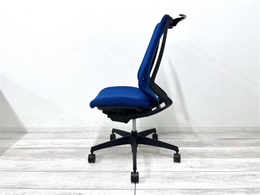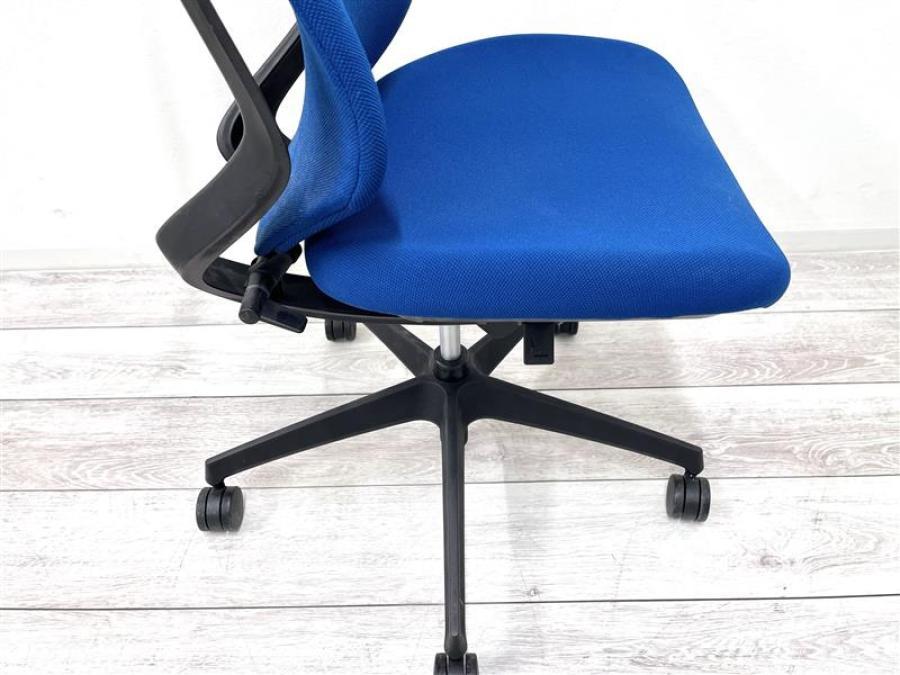 【在庫入替セール】コクヨ デュオラ 肘無しモデル クッションタイプ ブルー×ブラックフレームの定番のカラーリング コートハンガー付き ※背もたれに破れ有り【T9】