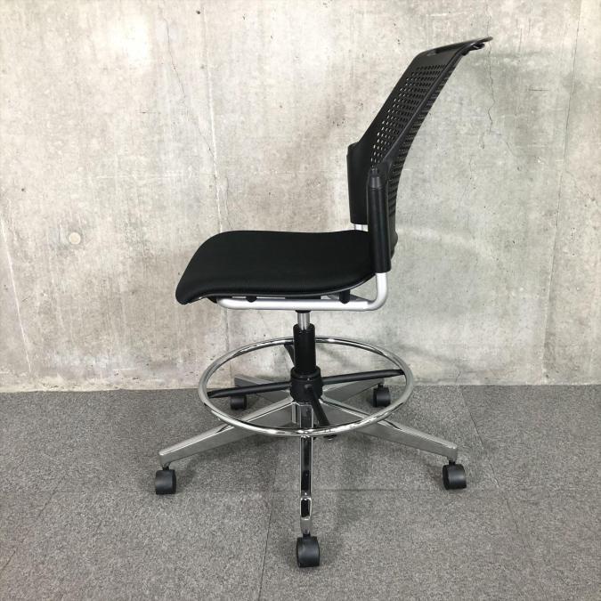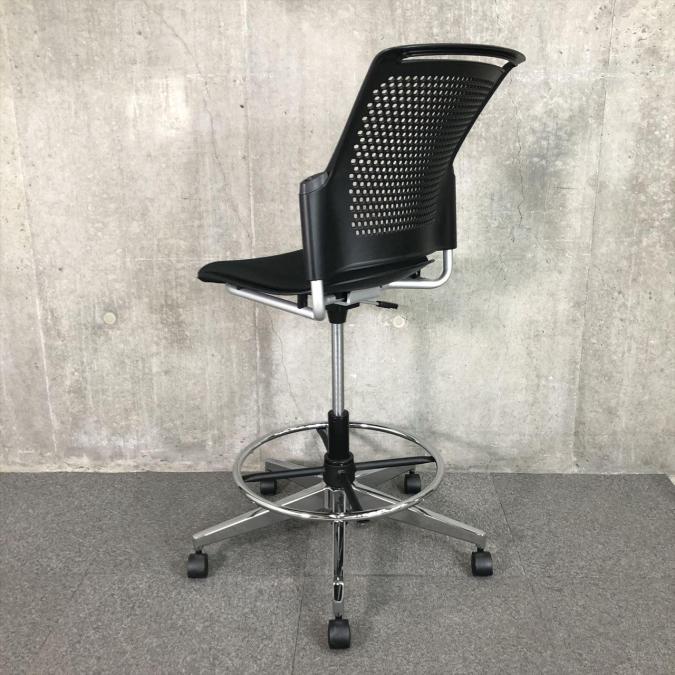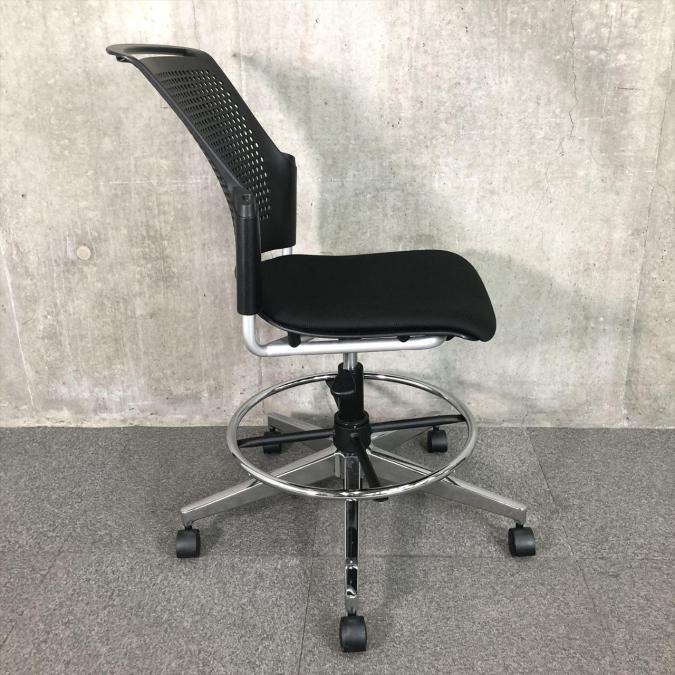 【A00995899】【熱がこもらない背もたれメッシュ構造!5本脚キャスター付で移動が楽々!】■プラス(plus)製 チェダーC 肘無カウンターチェア ■ブラック ■5本脚キャスター付- 茨城南店