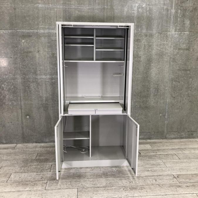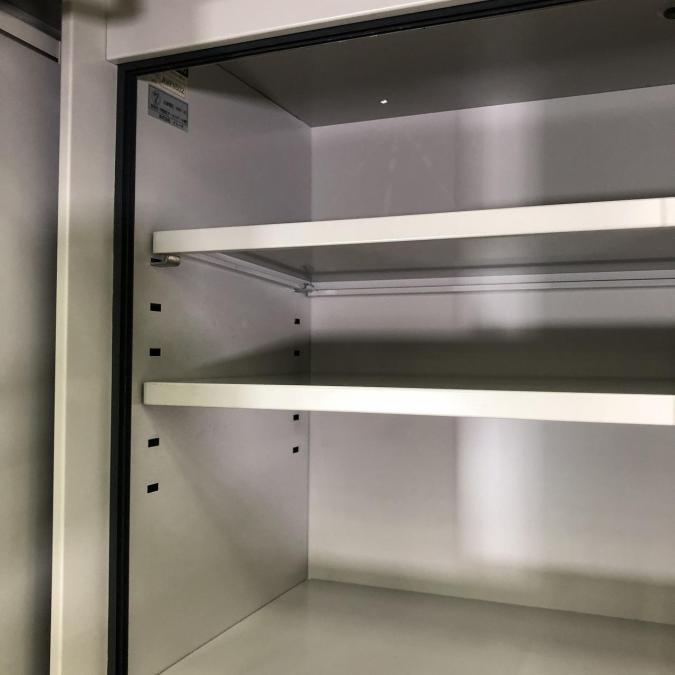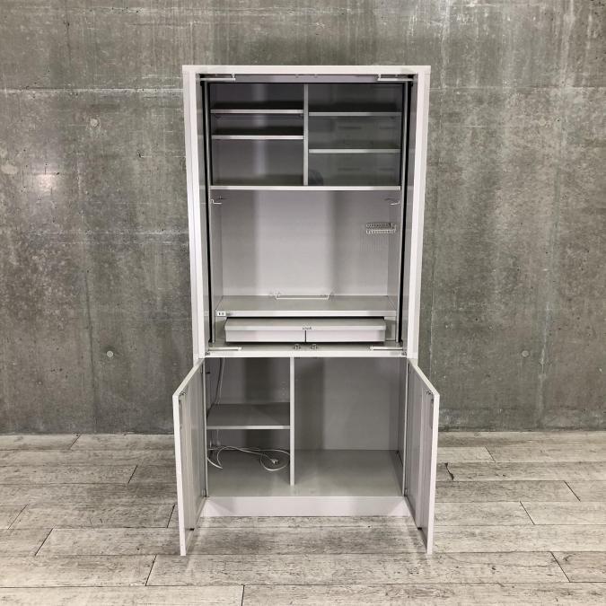 オフィスのキッチン周りをすっきり片付ける両開きキャビネットです。