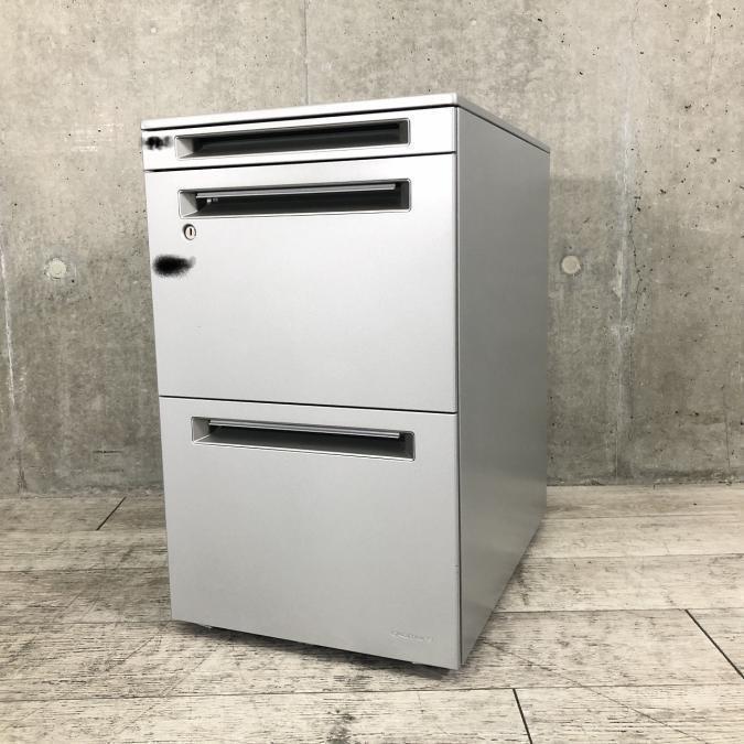 【シリンダー錠でセキュリティ面も安全!使い勝手のよい人気3段ワゴン!メタリックなカラーリングでフリアドとの相性も抜群!】■オカムラ(okamura)製 アドバンスシリーズ 3段ワゴン フリアド用 ■シルバー ■シリンダー鍵【IB】