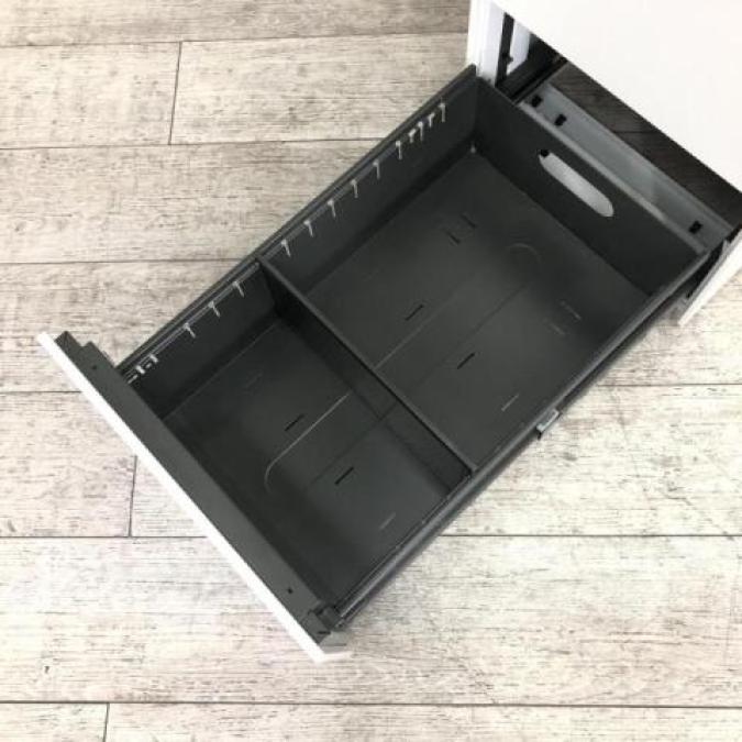 【正面に取っ手が無いフラットなデザイン!キャスター付でレイアウト変更がスムーズ!】■オカムラ(okamura)製 プロユニットシリーズ 3段ワゴン フリアド用ワゴン H650㎜ ■ホワイト ■シリンダー錠 ※キズ・塗装剝がれ有【弊社使用欄:A01042240】