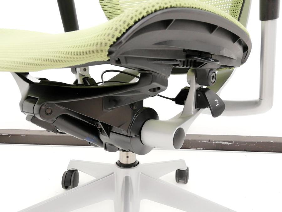 座面のすぐ右下にあるレバーの操作にて、座面位置の上下調整(100mm)が可能です。