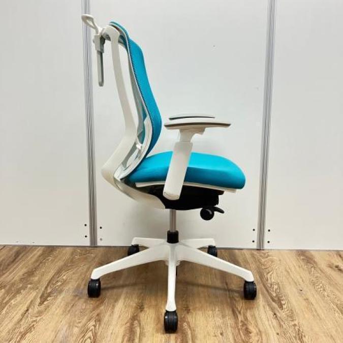 【新品ヘッドレスト交換済み】オカムラ/シルフィー/ブルー/可動肘