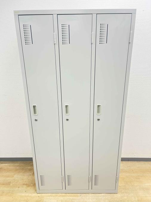 【訳アリ特価品】【縦型なので長めの衣類も収納可能!増員にもオススメ!】 3人用更衣ロッカー ■ニューグレー ■シリンダー錠- 岐阜店
