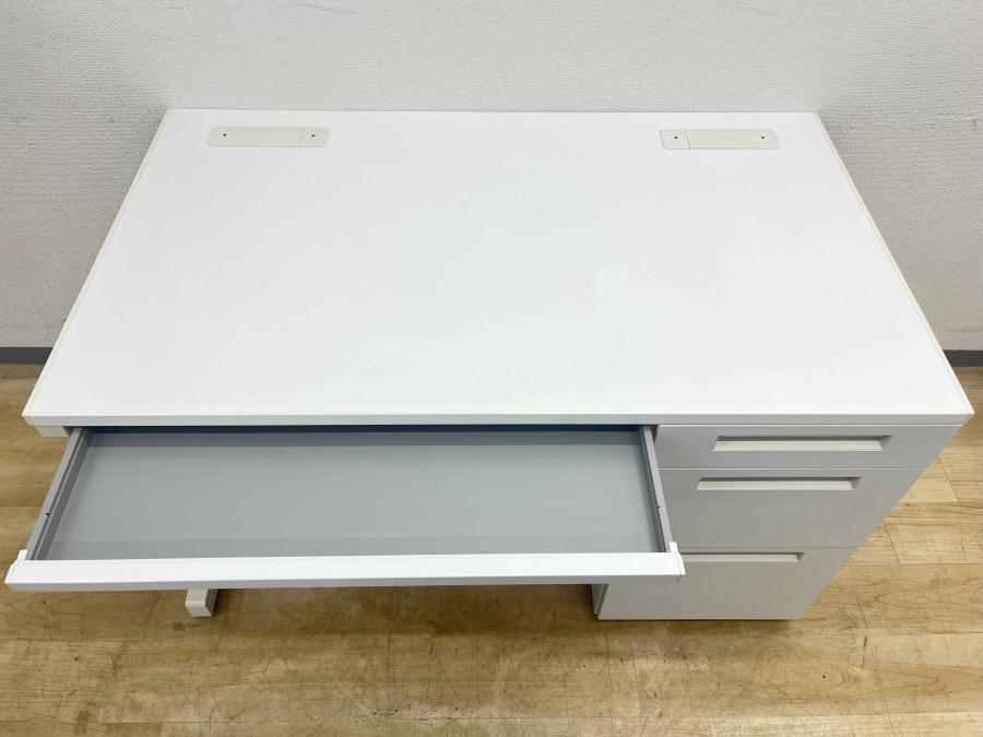 【収納力を備えた幅1200㎜サイズ!使い勝手のいいキャビネット一体型の片袖デスク!】■イナバ(Inaba)製 デュエナ 片袖机 ■幅1200㎜ ■色:ホワイト- 岐阜店