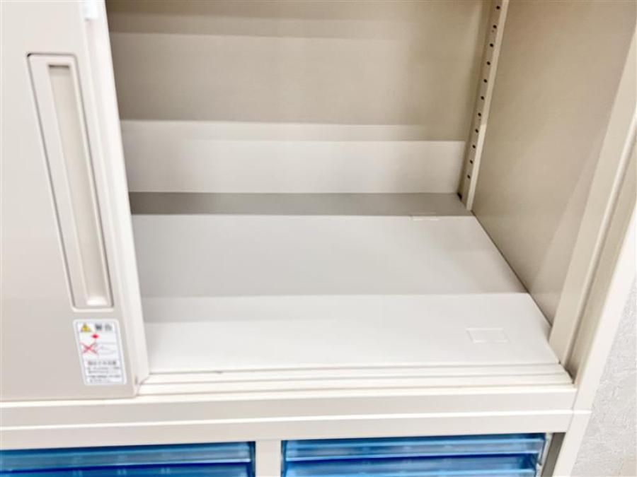- 一部不具合ありそ引出の開閉不可、施錠不可、棚板無しといったの書庫の本来の効用を果たすための機能以外の一部が使用不可(例、扉、引出の開閉がしづらいなどがある。 )