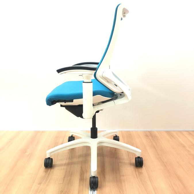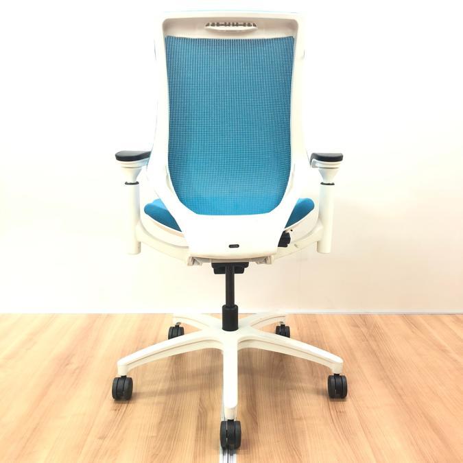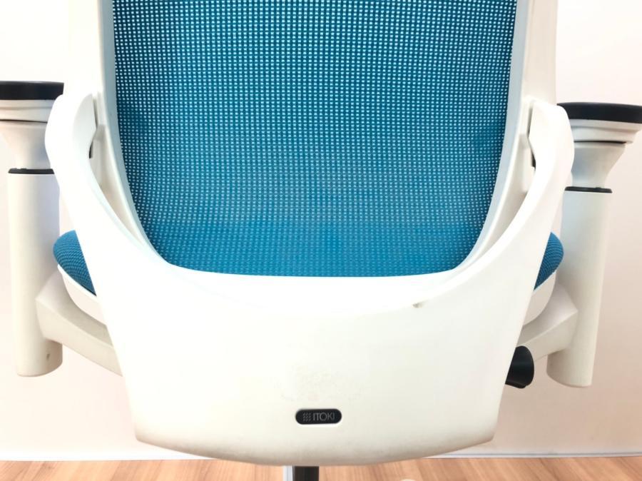 姿勢の変化にフレキシブルに対応!スタイリッシュで座り心地も抜群な大人気の高機能チェアが入荷! ■イトーキ(ITOKI) エフチェア(f)/ストロングブルー×ホワイトフレームメッシュ 背面メッシュ コートハンガー付・可動肘付 旧タイプ