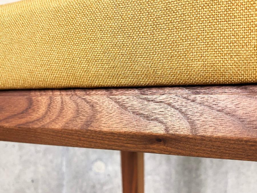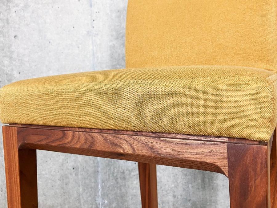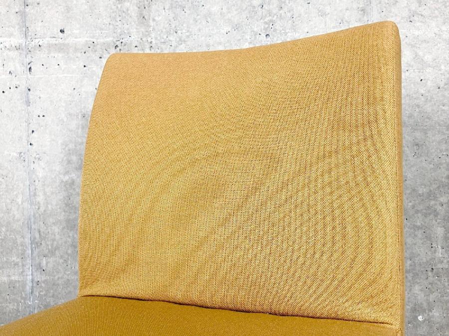 背もたれは体になじむように緩やかにカーブしながら長い脚先へとおさまってゆく流れるような美しい印象を持たせ、その優しいファブリックの後姿は空間に柔らかさと洗練さを生んでくれます。