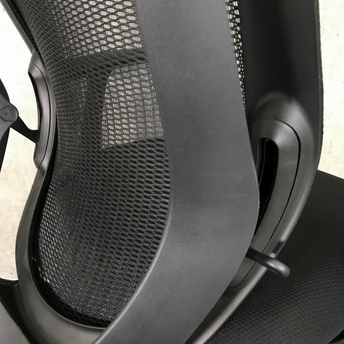 背の両サイドにあるレバーを下の位置にすると緩やかなカーブになり、大柄な方にフィット。