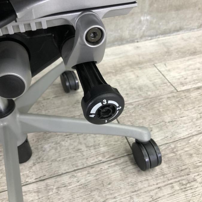 - ロッキングの強弱を調整するダイヤルがございます。体型に合わせてリクライニングの固さを座ったままで調整できます。