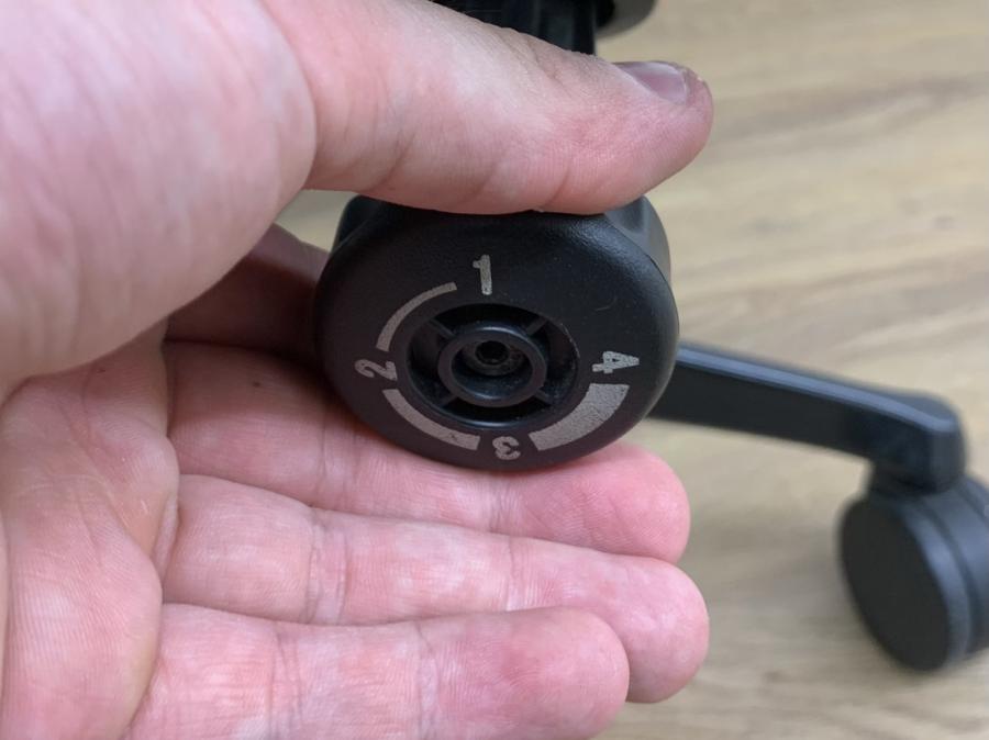 - ロッキングの強弱を調整するダイヤルがございます。体型に合わせてリクライニングの固さを座ったままで調整できます。