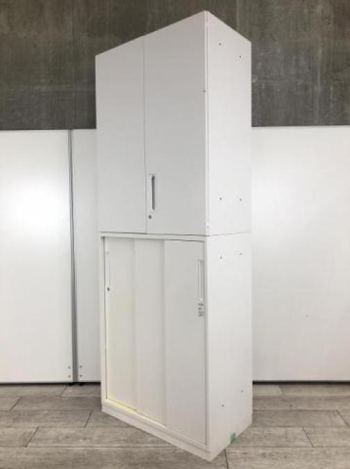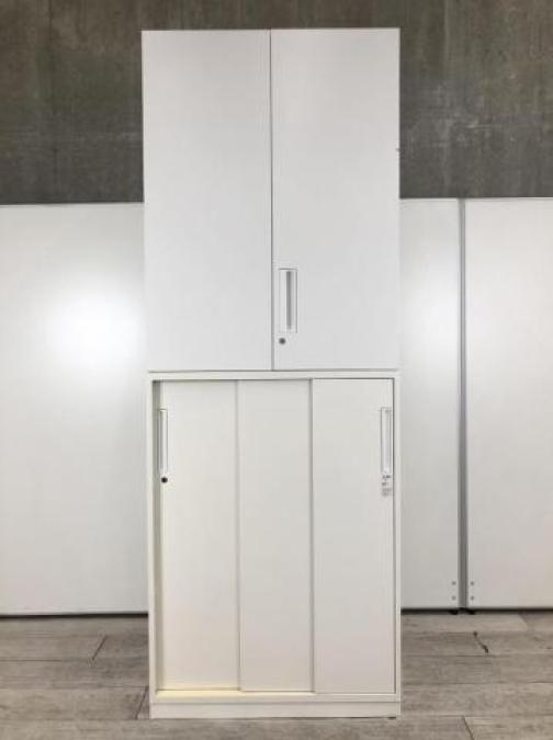 【オフィスの書類をまとめて整理!希少な両開き+引き違い書庫セットが入荷!!】■コクヨ(KOKUYO)製 エディアシリーズ 両開き+引き違い 書庫セット H2015㎜ ■2枚扉 ■シリンダー錠 ■ホワイト【AD】