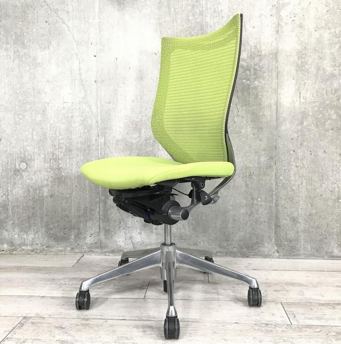 【硬めの座面が大人気!国内メッシュチェアの代表格!】■オカムラ(okamura)製 バロン(Baron)チェア バイバック 背面メッシュ 肘無し ■色:ライムグリーン※状態良好品サーキュラーバリューCO2削減量の算出について