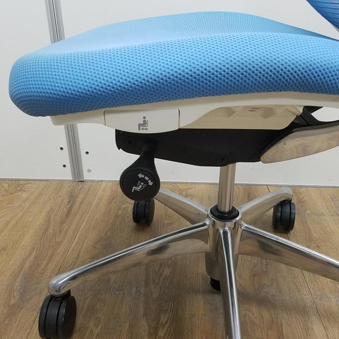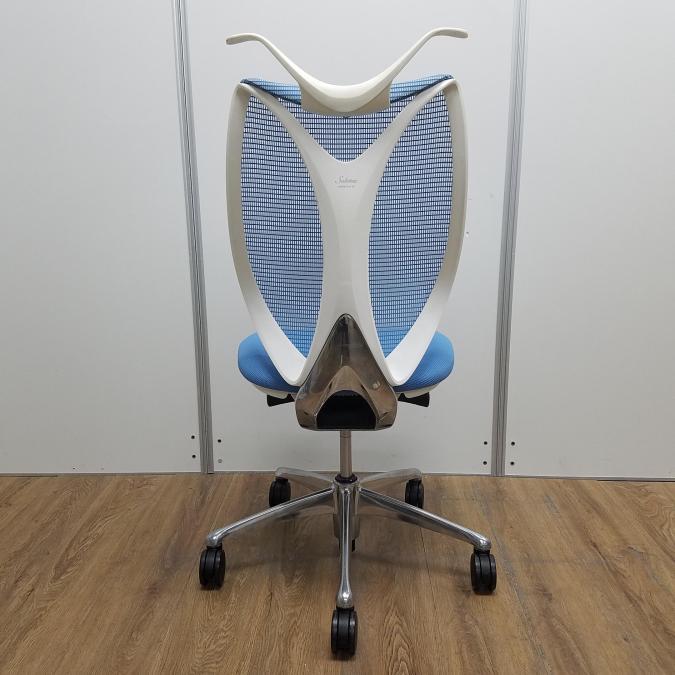 【在庫入替セール品】オカムラ製 サブリナ シリーズ アクアブルー 背面メッシュ ハンガー付 リングフレームとメッシュが背中をやさしく受け止める・最高級メッシュチェア! 肘無しハイバックチェア!!(2/4)- 品川・三田店