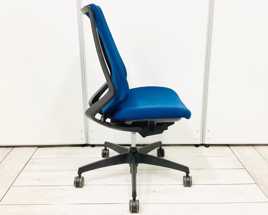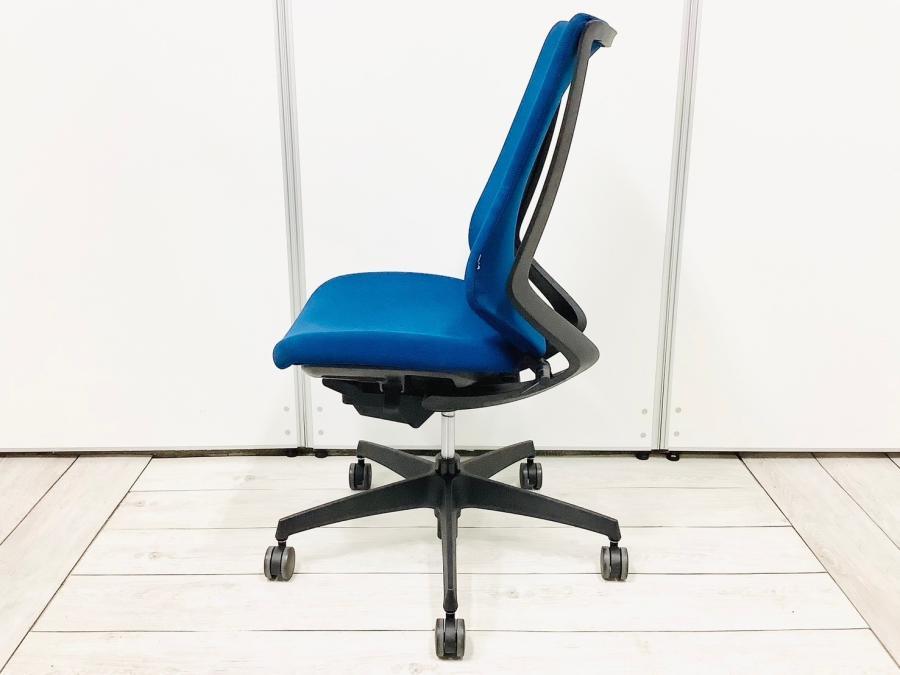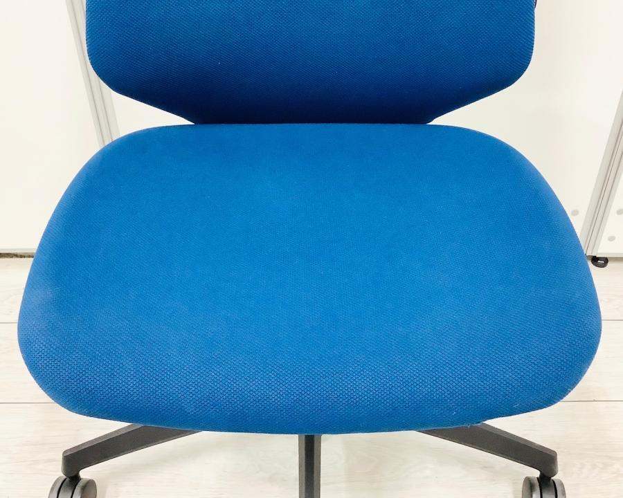 【在庫入替セール】コクヨ デュオラ 肘無しモデル クッションタイプ ブルー×ブラックフレームの定番のカラーリング コートハンガー付き ※背もたれに破れ有り【T9】