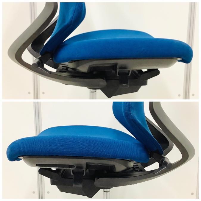 - 座面の高さは上下に90㎜、奥行は前後に50㎜調節可能。さらに骨盤を支えるポスチャーシート採用で着座時の前滑りを防ぎます。