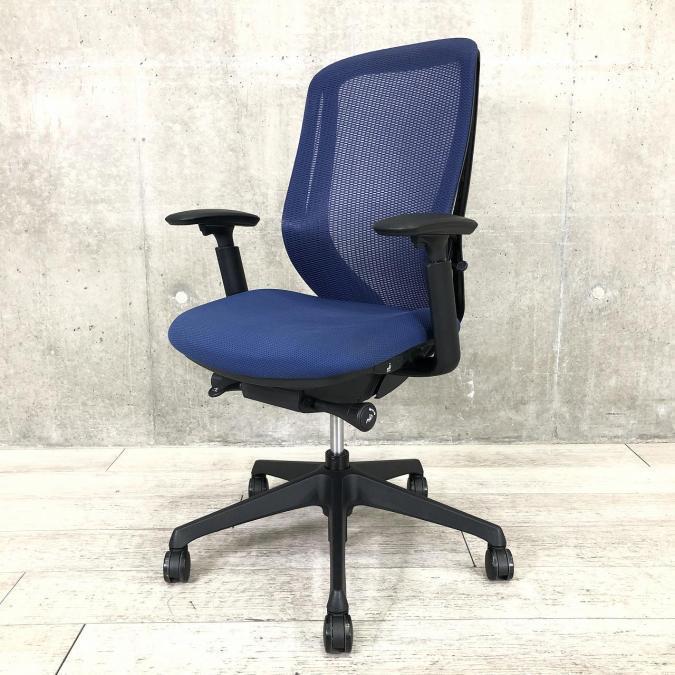 【新品ヘッドレスト交換済み】オカムラ/シルフィー/ブルー/可動肘