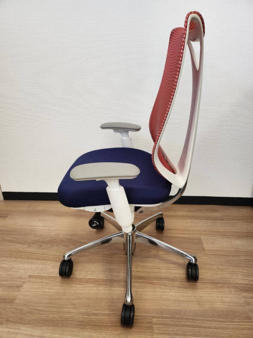 【在庫入替セール品!(本在庫限定価格)】人間工学から生まれた最先端のワーキングチェア!■オカムラ製 サブリナチェア 可動肘付 背:レッド / 座:ダークブルー ■【流れるような美しいフォルム!姿勢に心地よくフィット!】★- 川崎店