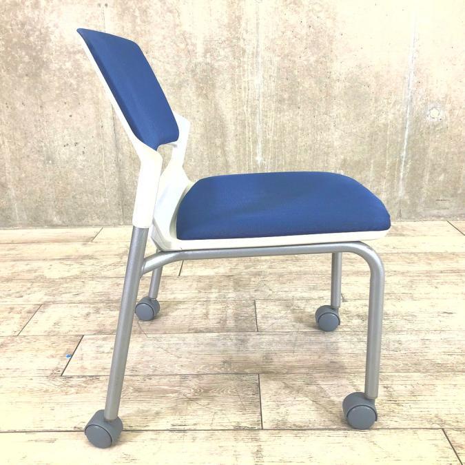 【残り2脚の為、お安く!】【キャスター付きで使いやすい!ミーティングに最適!】■ウチダ(UCHIDA)製 MF-180シリーズ スタッキングチェア ミーティングチェア ■キャスター付き ■レイズンブルー×ホワイトシェル