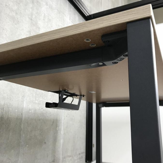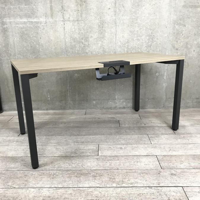 【ゆったり使用できる幅1400mm・便利なコンセント付き!】■イトーキ製 アクトリンク(Act Link) パーソナルテーブル(平机タイプ) ■4本脚 天板:アッシュドオークM 脚:ブラック【AD】- 足立・葛飾店