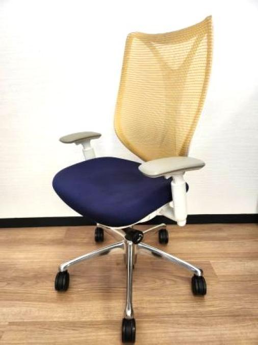 【在庫入替セール品】【来店限定キャンペーン】希少/高級/高機能/前傾 オカムラ(okamura)サブリナチェア (Sabrina) ハイバック 背面メッシュ 可動肘付 座面:ネイビーブルー 背面:イエローサーキュラーバリューCO2削減量の算出について
