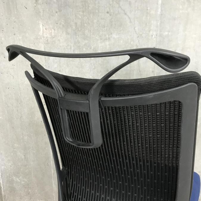 【関西倉庫在庫】オカムラ製 ヴィスコンテシリーズ ミディアムブルー ブラックフレーム コートハンガー付き 人間工学に基づいた心地よい座り心地! 高いデザイン性と快適なクッション性が人気 【弊社使用欄:A01046061】
