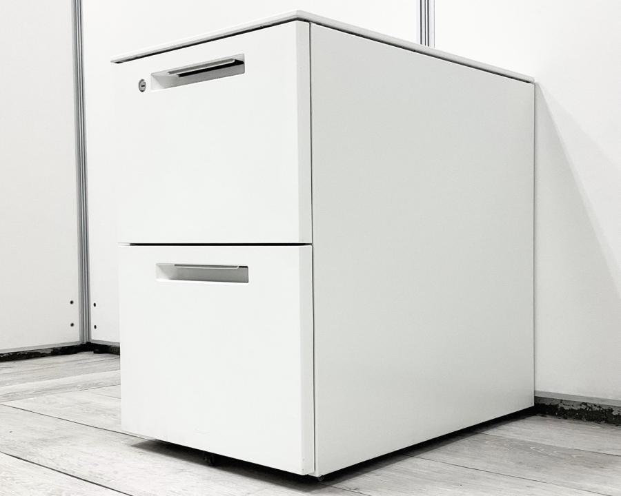 【使いやすさ抜群のキャスター付き2段ワゴン!収納力抜群!】■コクヨ(KOKUYO)製 iSシリーズ 2段ワゴン デスクインワゴン H600mm ■ホワイト ■シリンダー錠