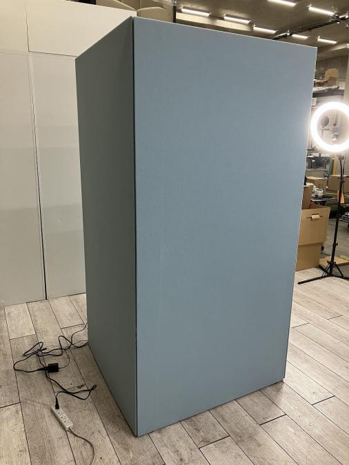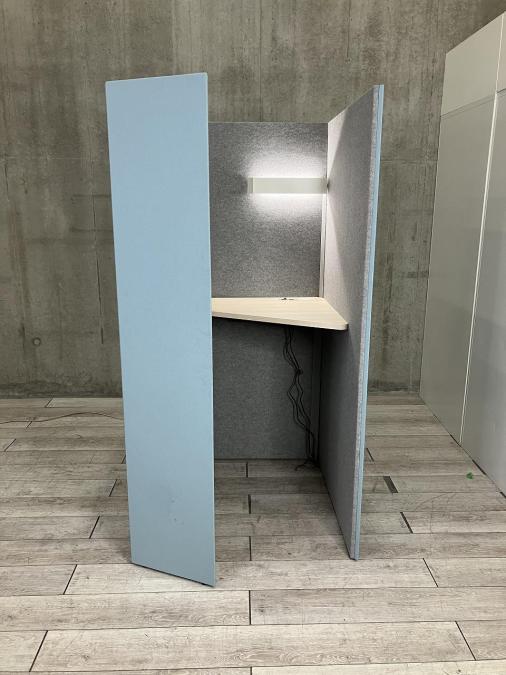 【左開口】【ワーカーの集中を高める省スペースなワークブース!ハイテーブルタイプ!】■オカムラ(okamura)製 ドレープシリーズ(drape) テトラタイプ 1人用ブース ソロワークブース(W1000/D1200/H1920) ■ハイテーブル H1000㎜ ■色: ブルー(内側ライトグレー) ■ライトつき【ABW商材】【関東倉庫在庫品】【弊社使用欄:A01046691】