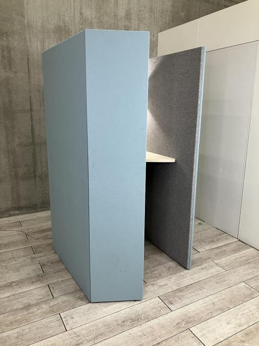 【T10】【商品入替のため、残り1台限り】オカムラ製 ドレープ(drape) ライトブルー × グレー 集中ブース ソロワークブース W1100/D1100/H1920サイズ 天板:高さ720サイズ ワーカーの集中を高める省スペースなワークブース! 1人用ブース!!