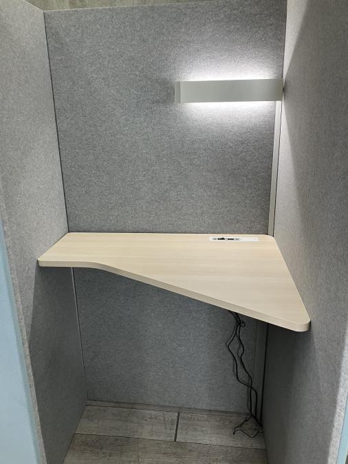 集中力を高めるだけでなく、ブースの対角線上に座ることで、