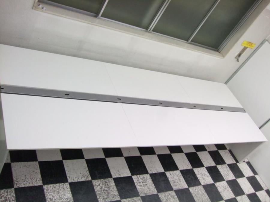 天板は1枚横幅2400mm×3(左右)中間脚は2本で構成されます。