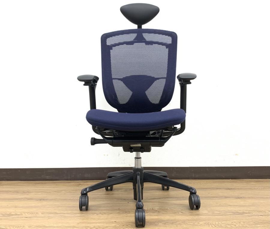 【オカムラ製の最高級チェアが残り1脚限りです!!】オフィスバスターズ 東大阪店 オカムラ製 コンテッサ シリーズ ダークブルー アジャストアーム※可動肘 背/座面メッシュ ランバー 世界で認められた革新的タスクチェア!人間工学に基づいた快適な座り心地を実現! 肘付きハイバックチェア!! 中古 外部倉庫品