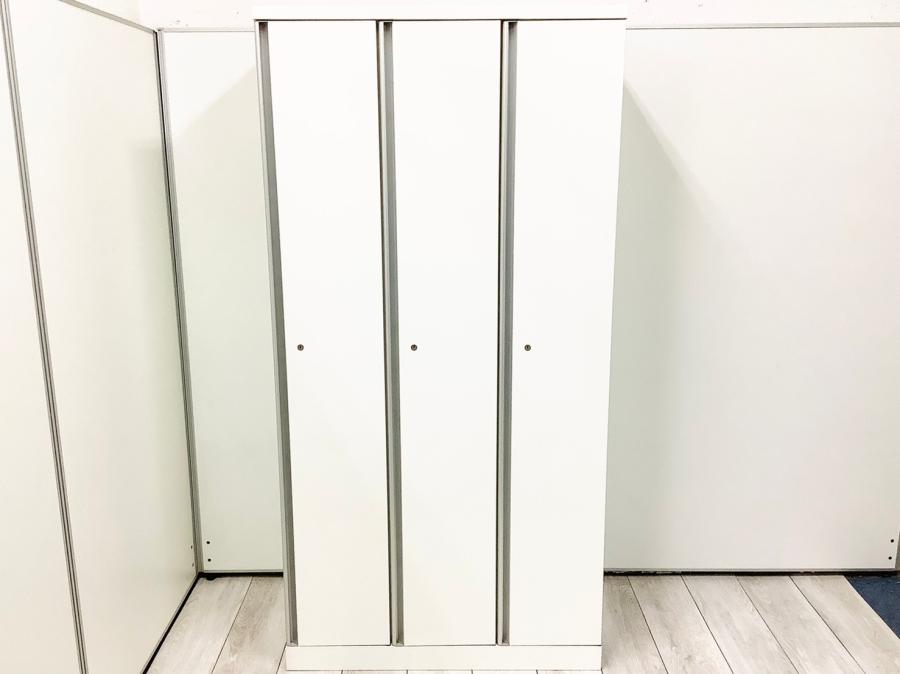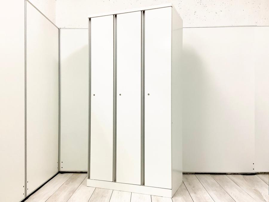 シャープなデザインのホワイト3人用ロッカーが入荷!