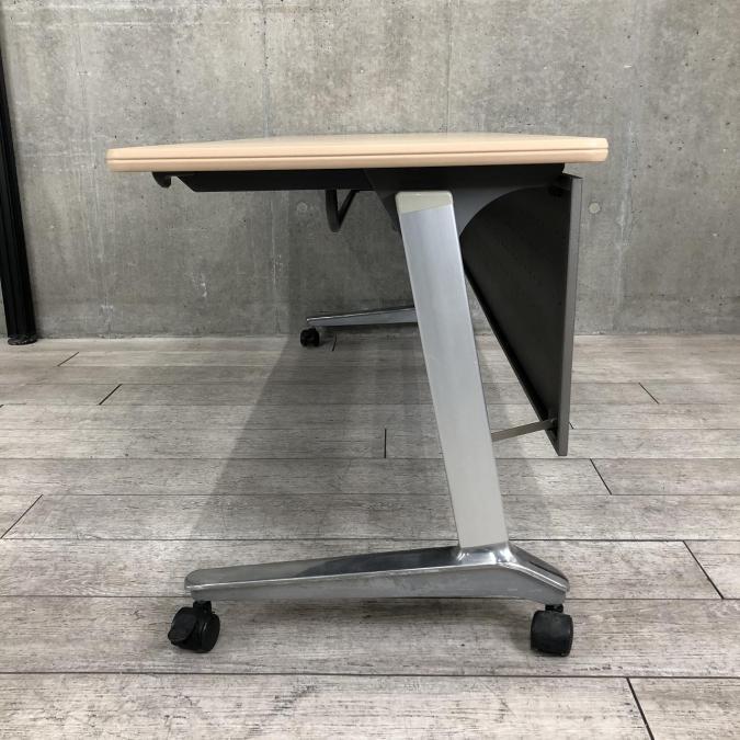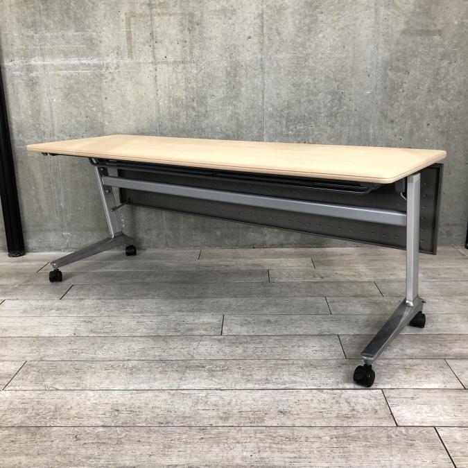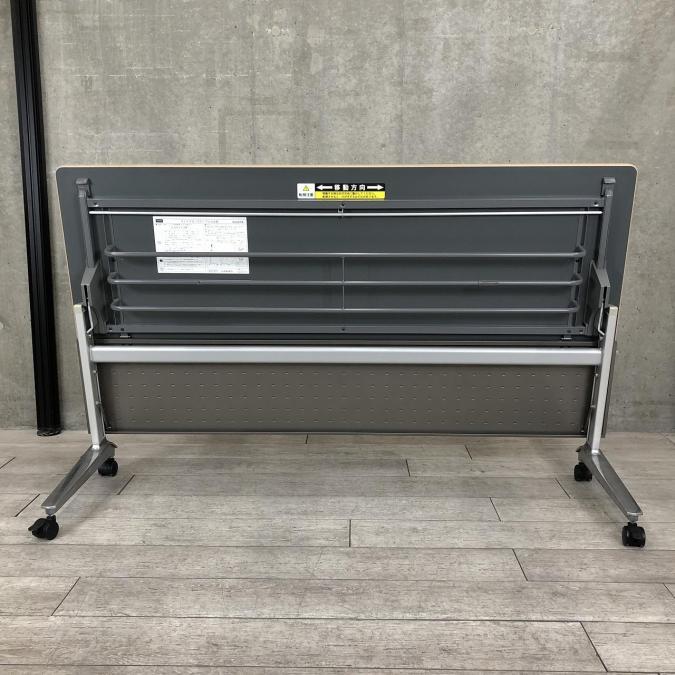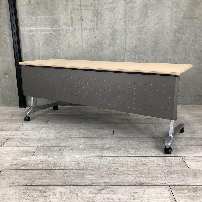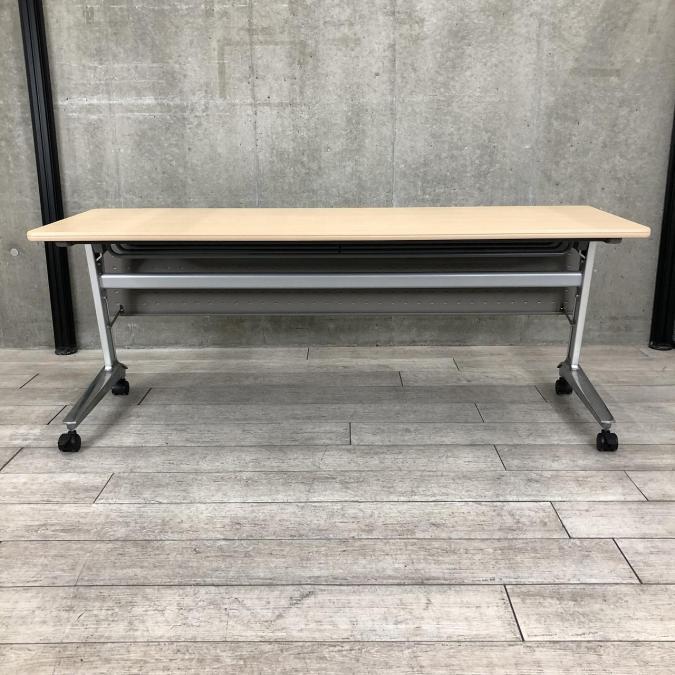 【移動・収納がらくらく!キャスター付き折り畳みテーブル!】■ウチダ サイドスタックテーブル W1800×D600mm 幕板付き ■天板:メープル色 (木目) 【UCHIDA SA型】- 川崎店