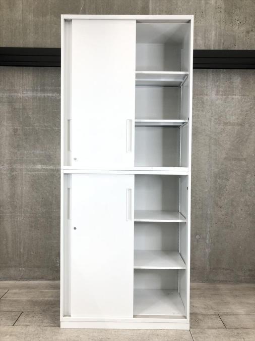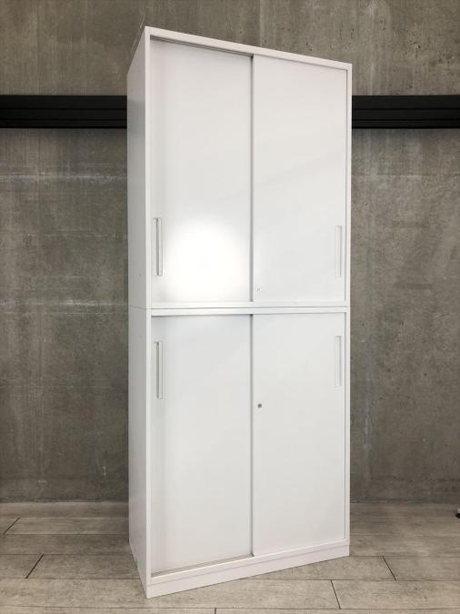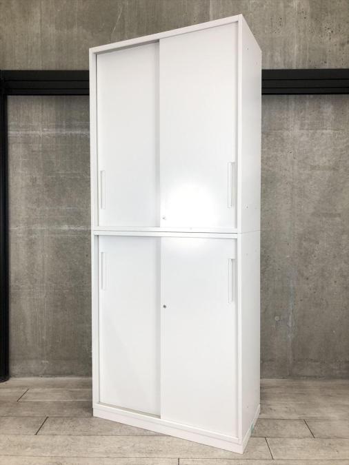 【1セット限定】【下の書庫に傷あり】【開閉時に場所を取らない引き違い戸の書庫セット!】■ウチダ製 HSシリーズ 引き違い+引き違い ハイキャビネット 2枚引き戸 ■ホワイト ■シリンダー錠 オフィスバスターズ 梅田本店【未】
