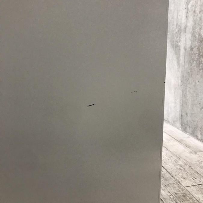 - 目立つ箇所あり傷・凹みが多数、深い傷・凹みが一部ある。(例、天板、正面、背部、サイド部分にある。)