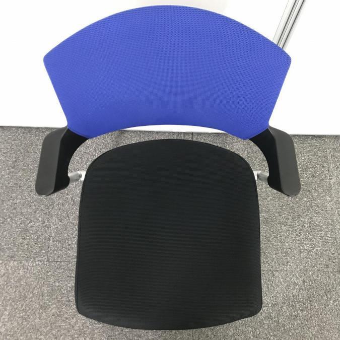 【8脚入荷】【シンプルスマートなスタッキングチェア!分厚いクッションで長時間でも快適な座り心地!】■コクヨ(KOKUYO)製 プロッティ 肘付スタッキングチェア ■固定肘 ■キャスター付 ■背面ブルー×座面ブラック在庫がある店舗一覧