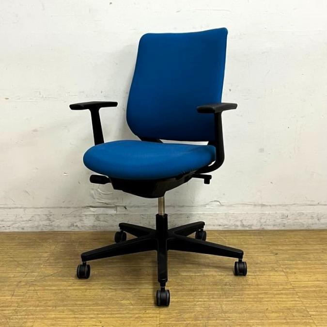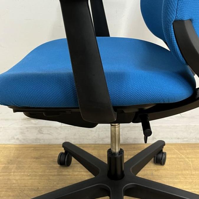 コクヨ ミトラ2 肘付きチェア(固定肘) 背ファブリックタイプ ターコイズブルー×ブラック 比較的状態も良好です- 名古屋千種店