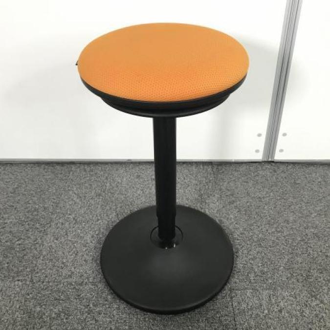 【A00996608】【「座る」と「立つ」のいいとこ取り!】■オカムラ(okamura) ピルエット(pirouetto) カウンターチェア スツール ■オレンジ シェル:ブラック【高さ調節可能なパーチングスツール!】【IB】- 茨城南店