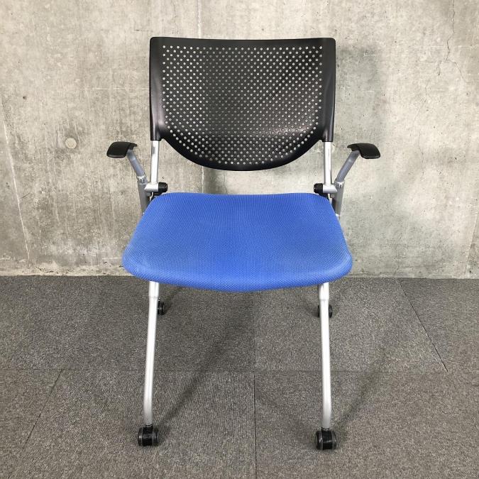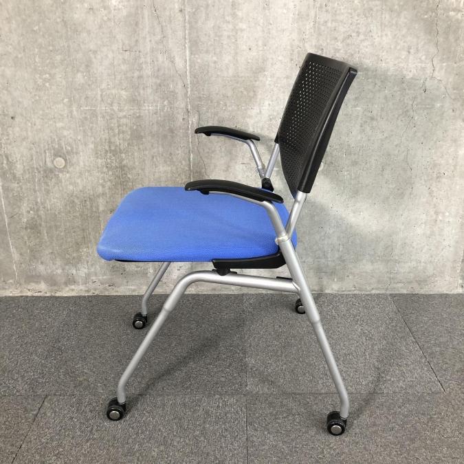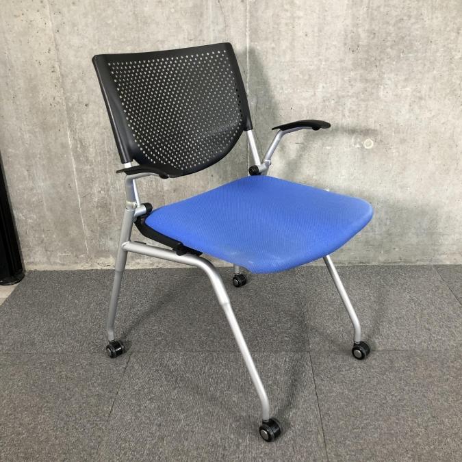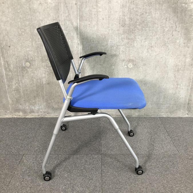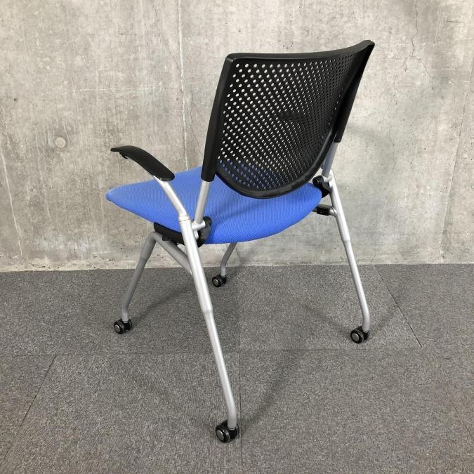 【会議室の定番!重ねて収納可能なスタッキングチェア!!】■オカムラ(okamura)製 プロスタック (PROSTUCK) ネスティングチェア スタッキングチェア 肘付き ■プレーンタイプ ■座面: ブルー/ 背面樹脂メッシュ: ブラック ■キャスター付【A00996605】【IB】@knd-stu~3/7サーキュラーバリューCO2削減量の算出について
