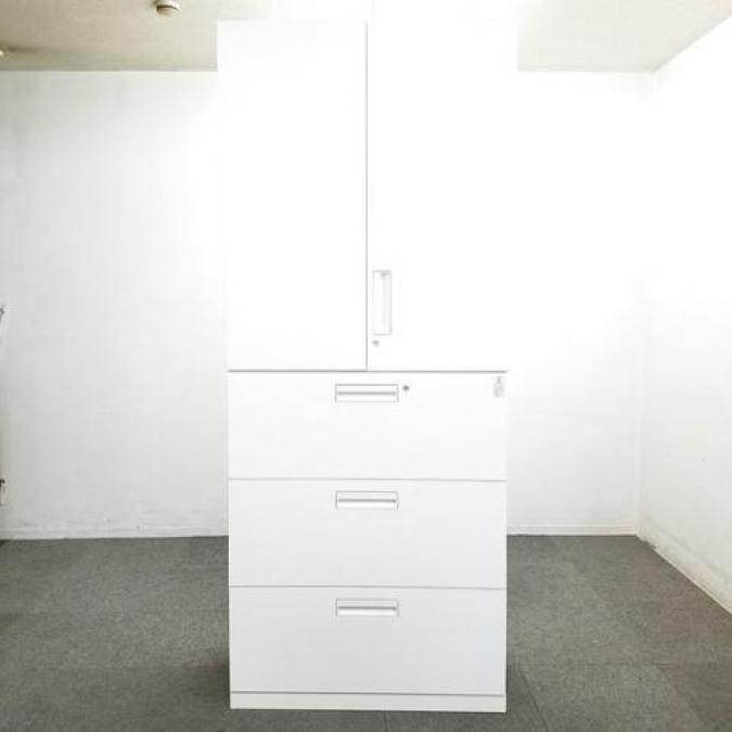 【収納量抜群の書庫セット!観音開き+引き出しタイプの人気の組み合わせ!】■コクヨ(KOKUYO)製 エディアシリーズ(EDIA) 両開き+3段ラテラル 書庫セット ハイキャビネット ■シリンダー錠 ■ホワイト【IB】