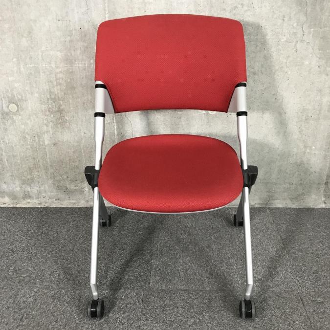 【会議室におすすめ!折り畳んで横に重ねて収納可能!】■オカムラ(okamura)製 リータ(LITA) ミーティングチェア ネスティングチェア 会議用 ■キャスター付 ■レッド【移動も楽々!】在庫がある店舗一覧