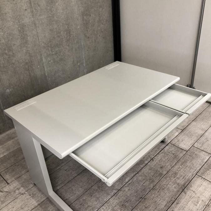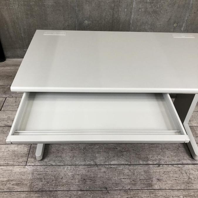 【使い勝手抜群のW1200㎜!!人気のスタンダードデスク!!】■ライオン製 EDシリーズ 平机 引き出し付 W1200㎜ ■グレー ■配線口付(2か所)- 品川・三田店