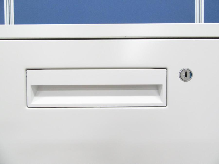 【4台入荷】【収納力抜群の3段ラテラル書庫!A4書類が大量に収納可能!】■コクヨ(KOKUYO)製 エディア(EDIA)シリーズ 3段ラテラル ローキャビネット ■天板/ベース付き ■ホワイト ■シリンダー錠