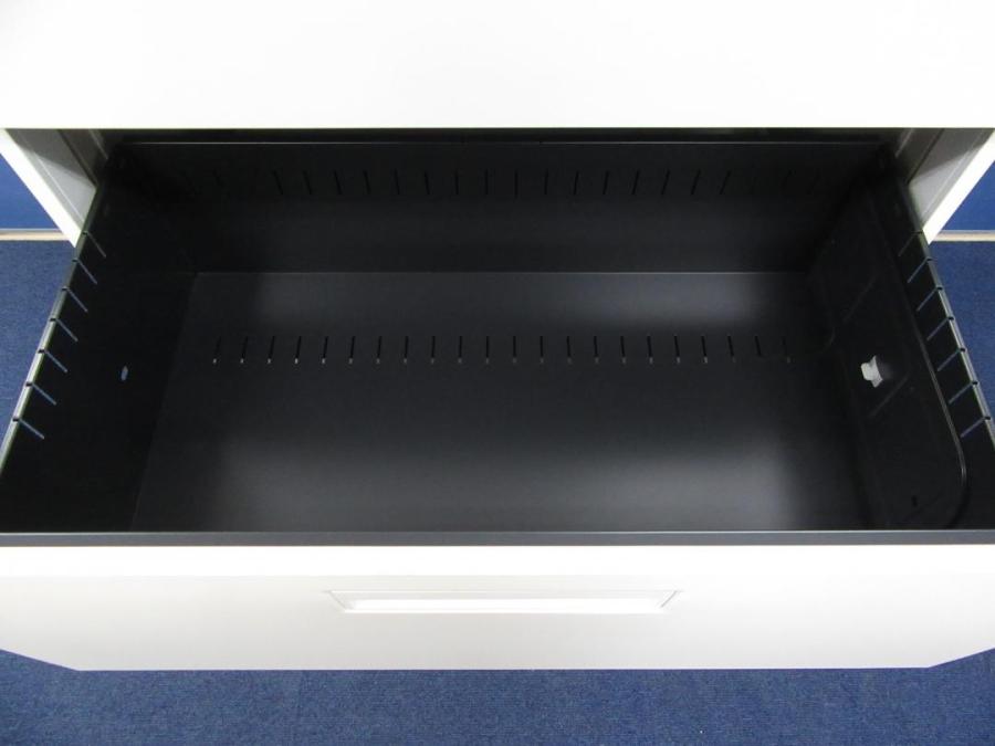 - 両開きタイプは扉が180度開き、通路の邪魔になりません。ラテラルタイプは引出しが限界まで出せ、出し入れ楽々。