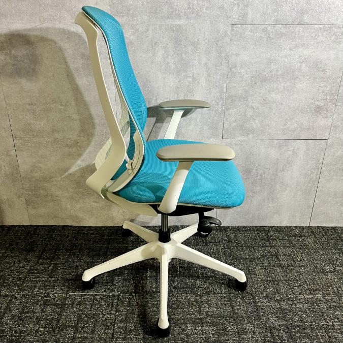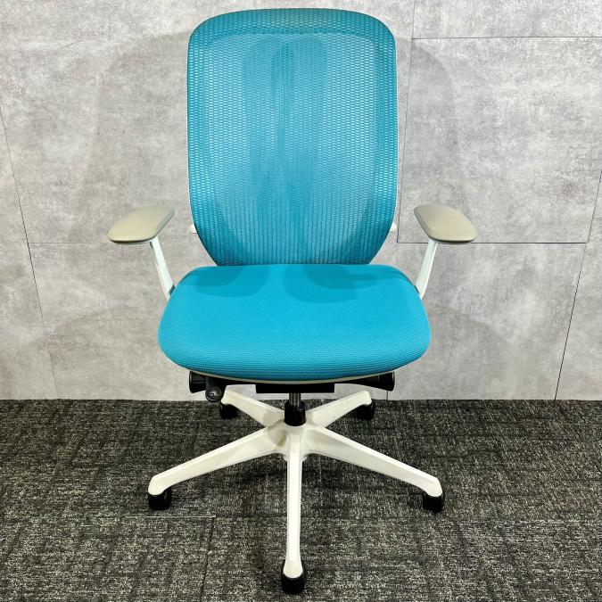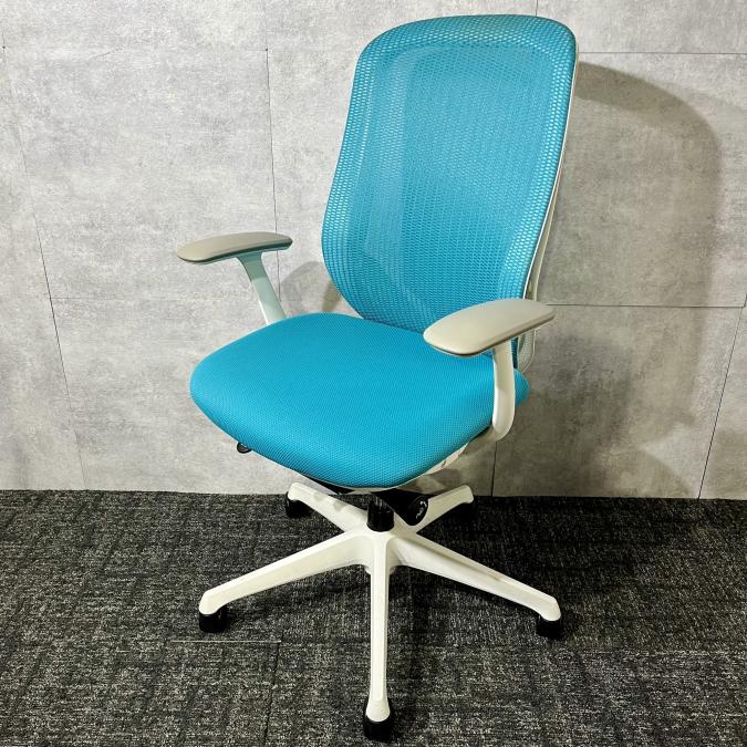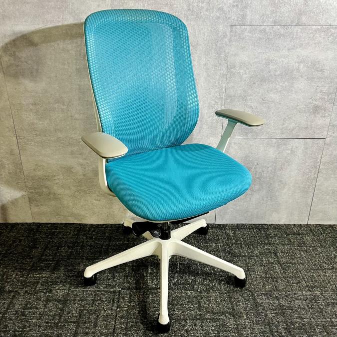 《現物写真だから安心!》オカムラ製の人気オフィスチェア【シルフィーメッシュ/可動肘/ヘッドレスト付き/ブルーグリーン】が先着1名様ご案内可能です!