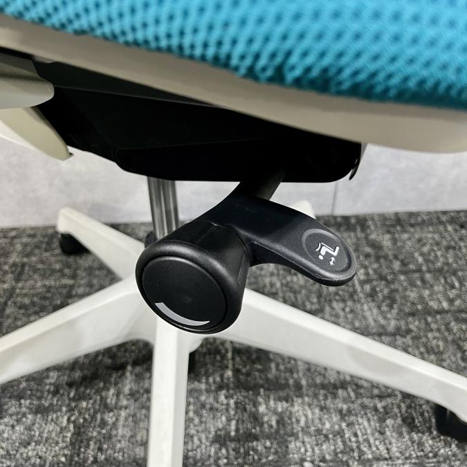 - 座面右下のダイヤル操作で、リクライニングの強弱調整が行えます。これまでのダイヤル式よりも、少ない回転数で、最弱?最強の調整が可能です。